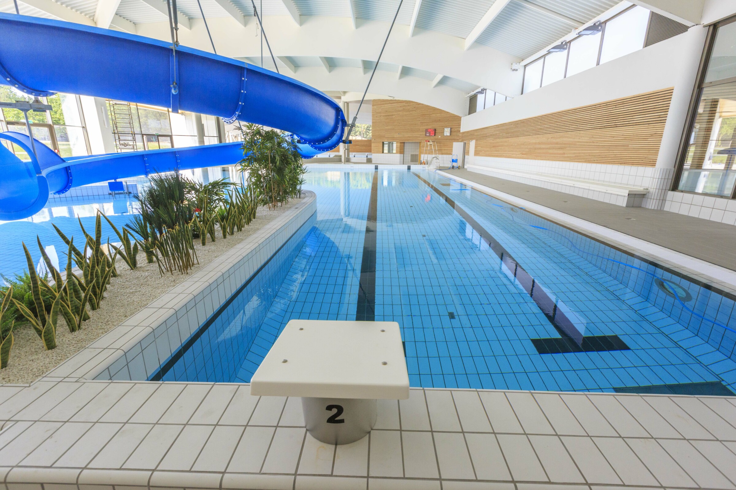 Un Espace Aquatique disposant d’un bassin sportif (de 25 mètres à 8 lignes d’eau), d’un bassin de loisir/détente avec toboggan, de deux pataugeoires et d’un bassin ludique extérieur avec pentaglisse. #ArchiCool
