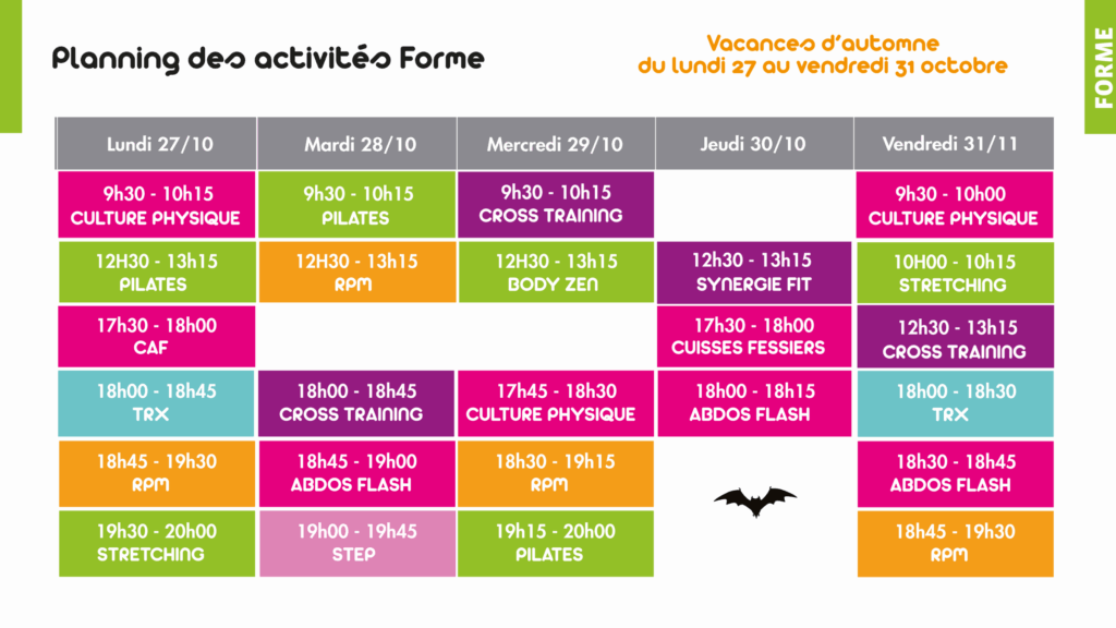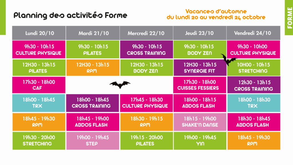 Planning de l’Espace Forme du 20 au 31 octobre